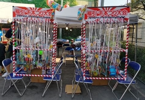 山野小PTAの出店は「千本つり」です。沢山のオモチャやおやつ、子どもたちは喜んでくれるかな…?