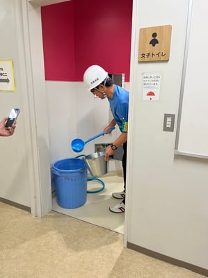 普段からお風呂の水を貯めておくと良いそうです。トイレはバケツ半分の水で流せるとの事でした。