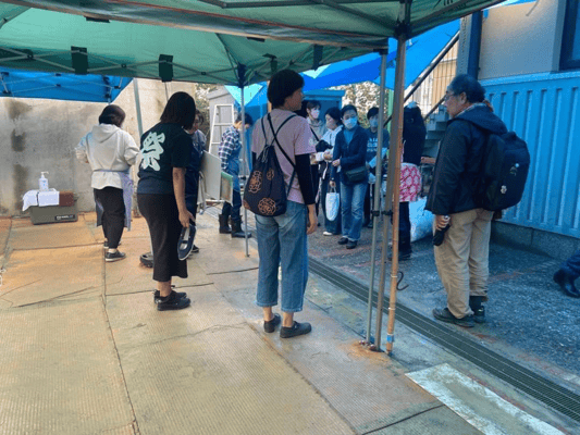 雨の中、入口の外にずらりと待つお客さんの列を見て、はやる気持ちを抑えつつカウントダウンで迎えた12時。「いらっしゃいませー!」とお客さんを呼び込みます。