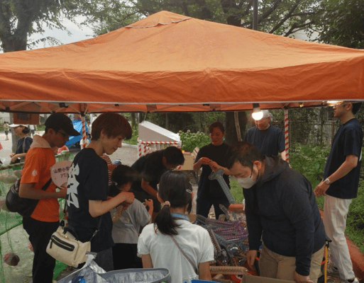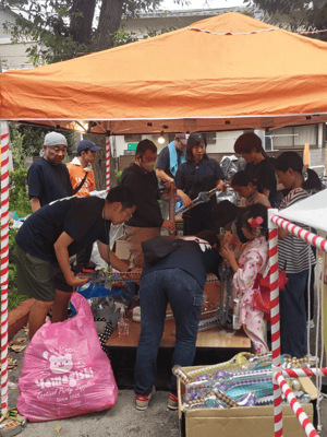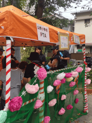 砧八丁目児童遊園にて行われた法人格砧町自治会【納涼盆踊り大会】で、山野小学校PTAは7/27(土)に「千本つり」を出店しました。