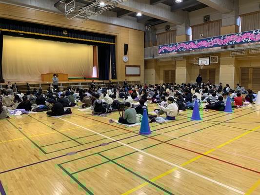 3~6年生は2学年ずつ体育館へ集合し、