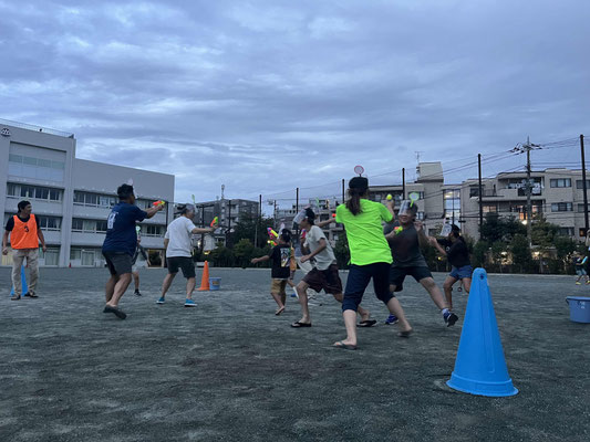 チームに分かれて、先に相手チーム全員のポイを破いた方が勝ち!というシンプルなルールですが、始まってみると大人も子どもも本気モード!