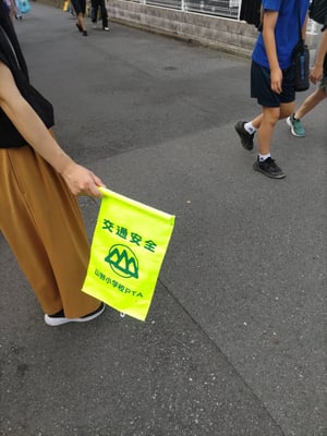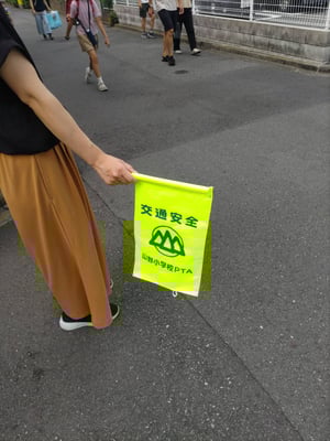 山野小PTAでは保護者が黄色い旗を持って一定の場所に立ち、子どもたちの安全な通学を見守る立哨活動を実施しています。立哨活動の企画・運営は、学校と連携しながら、PTAの校外担当者を中心に行っています。