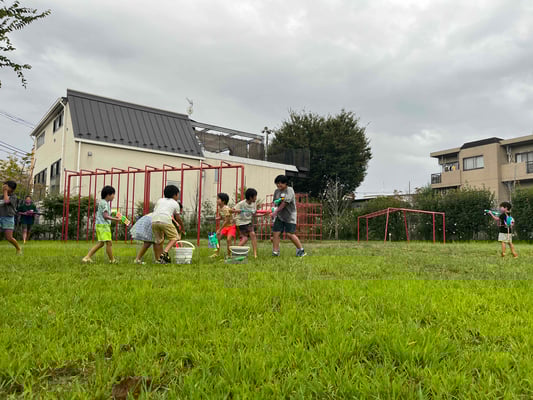 それでもみんなで木の下で「もう少しで止むかな?」と待っていると、まるで応援するように雨がやみ、再び元気に再開!最後まで全員で楽しむことができました。