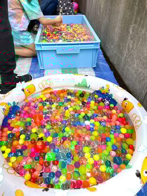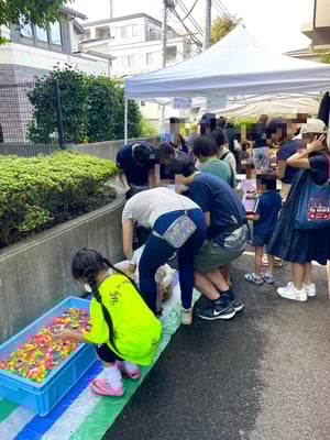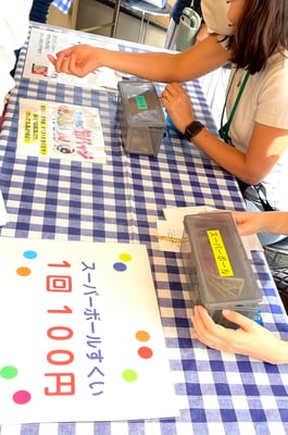 子どもたちに人気だったのは「スーパーボールすくい」と「オリジナル缶バッジづくり」。