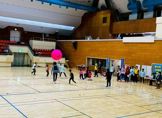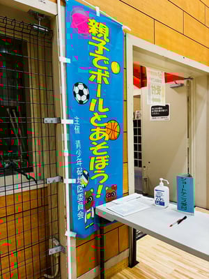 令和8年1月31日、大蔵総合運動場体育館にて、青少年砧地区委員会さん主催の「親子でボールとあそぼう」が開催されました。