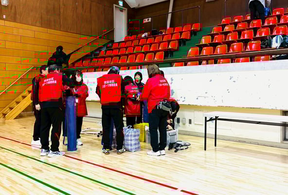 スポーツ推進委員の皆さんや山野児童館、砧地区委員会の方々の運営のもと、山野小からは地域イベントサポーター3名が受付や誘導などのお手伝いをしました。